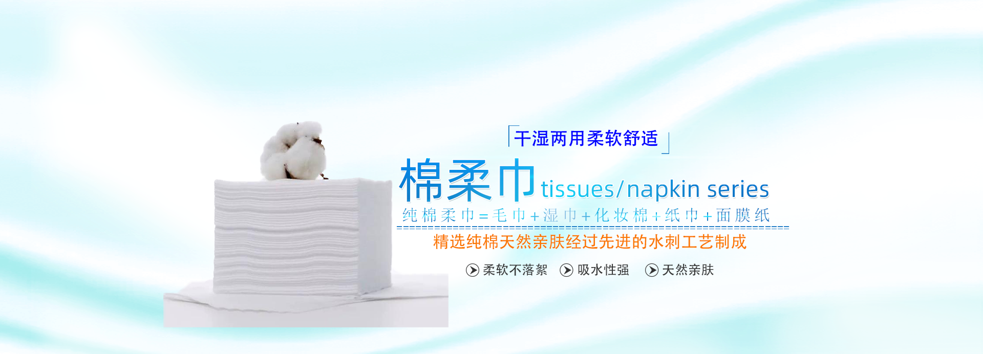 純棉水刺無紡布,為全新的水刺工藝。將優(yōu)質(zhì)的天然棉纖維經(jīng)梳理成網(wǎng)后,通過...